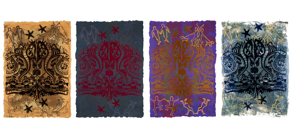 The final layer of all of these prints being made up of flock. For me flock felt similar to dust. It has a fragile quality and makes a big impact as it sits on the surface of the image.