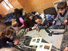 Chile to Batsford is a Giant lino print made by visitors cutting and printing the lino at Batsford Arboretum.